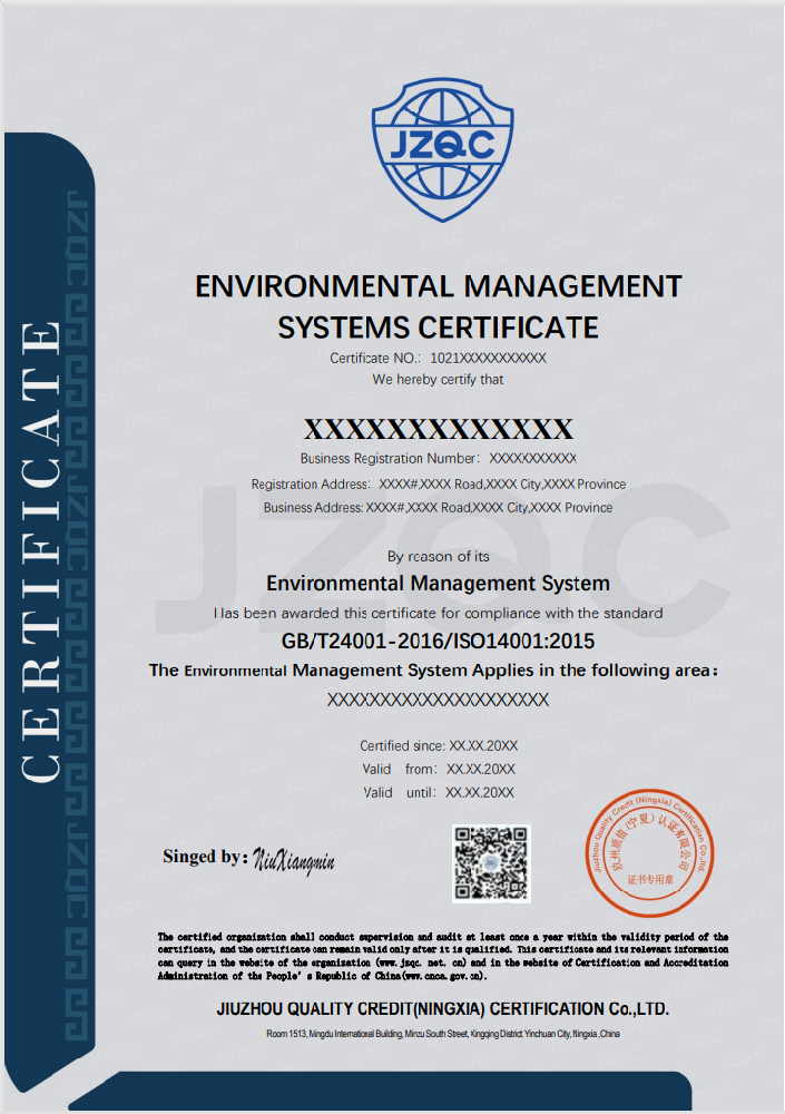 环境管理体系认证证书(ISO14001)