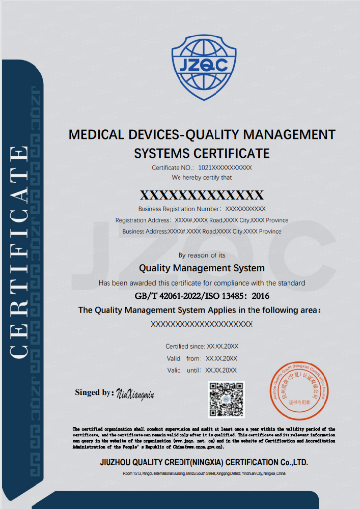 医疗器械质量管理体系认证证书(ISO 13485)